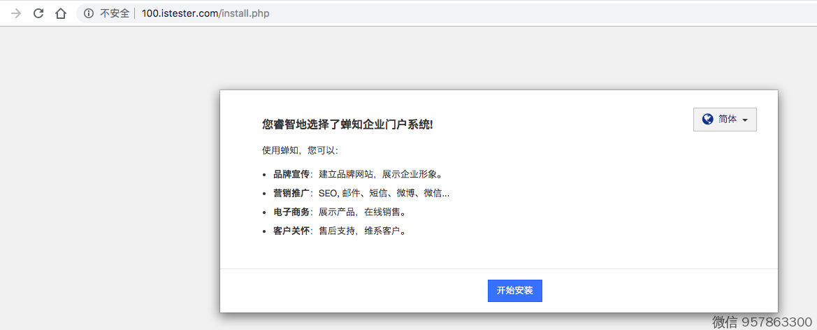 输入网址 http://100.istester.com/install.php