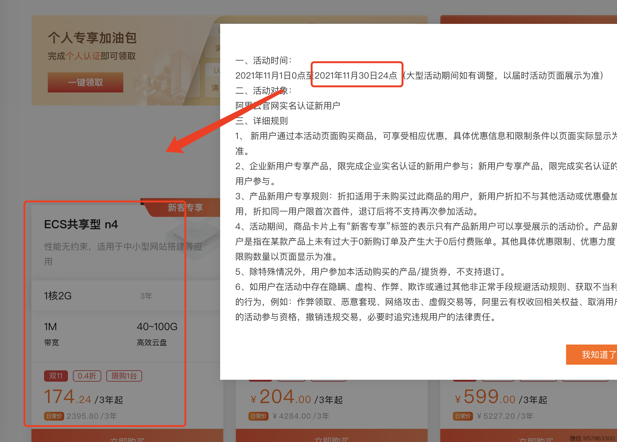 刚看了下,阿里云 双11 的 云服务器 活动 ,居然还没结束 。