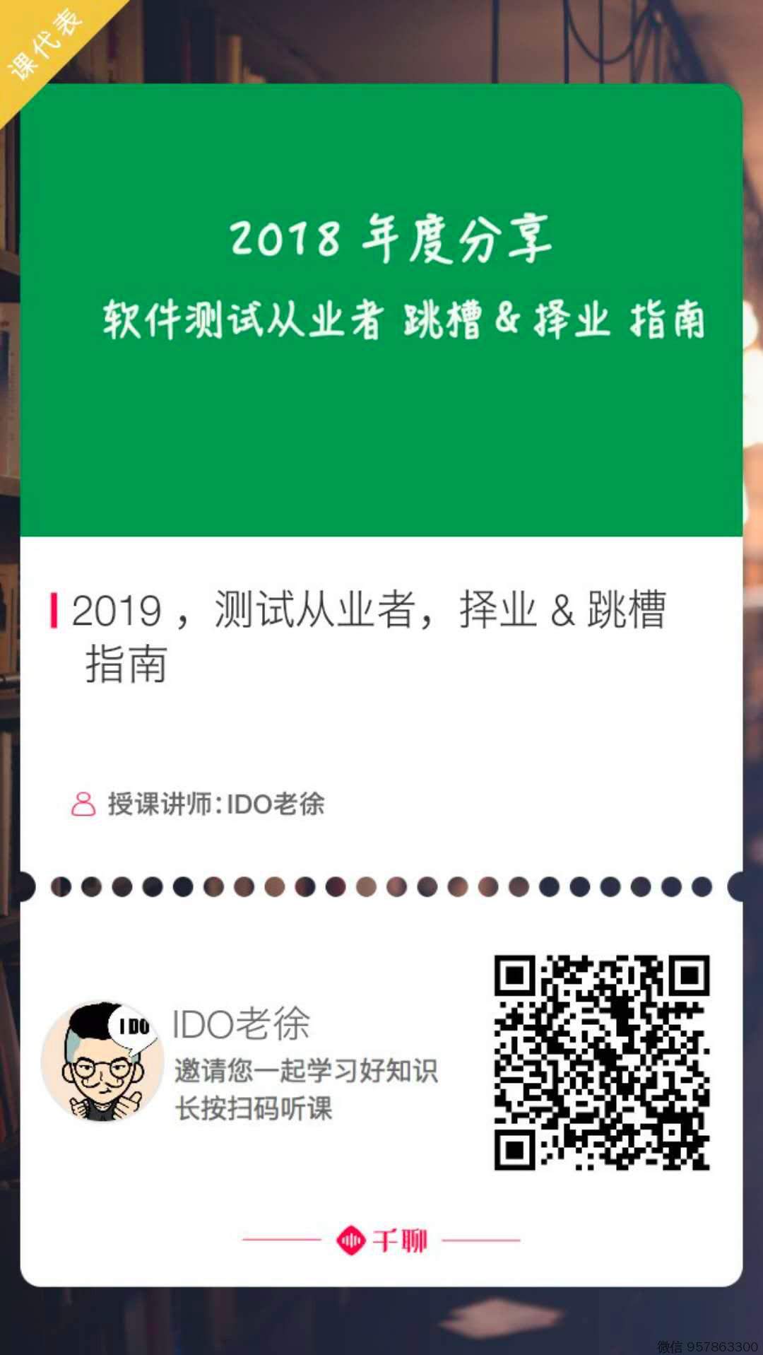 每年的12月21日,IDO老徐 ,都会在线上,来一场针对软件测试从业者的直播分享 。